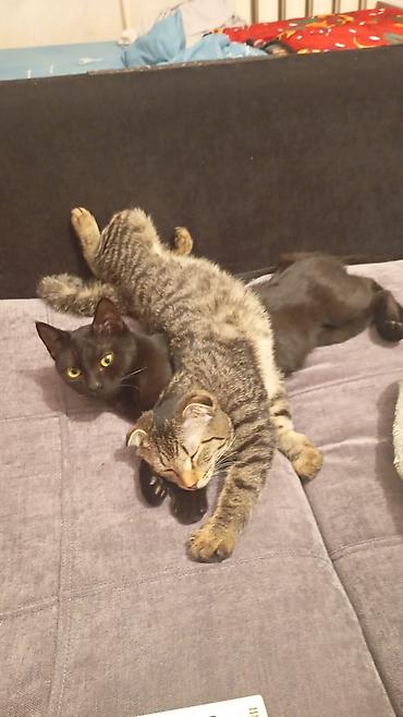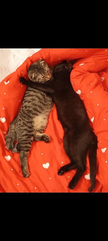 Пара молодых домашних кошек — неразлучные друзья.В подарок прилагаются два пятимесячных котенка, лоток для туалета и сам лоток.