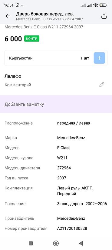 Дверь передняя левая для Mercedes‑Benz E‑Class (W211)