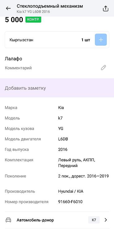 - Номер по производителю: 91660-F6010 (см. ярлык на узле).