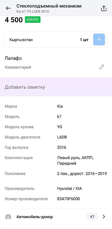 - Комплектация авто‑донора: левый руль, АКПП, передний привод