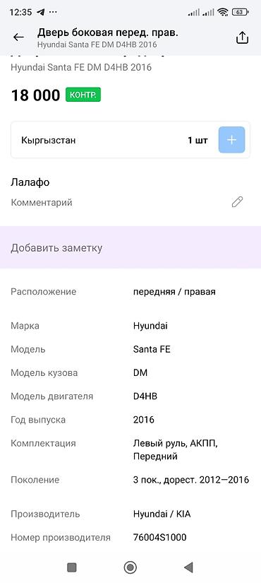 Дверь боковая передняя правая для Hyundai Santa Fe (DM), дорестайлинг 3‑го поколения, годы 2012–2016. Совместима с автомобилями 2016 года, двигатель D4HB, левый руль, АКПП, передний привод. Производитель: Hyundai/KIA. Оригинальный номер: 76004S1000.