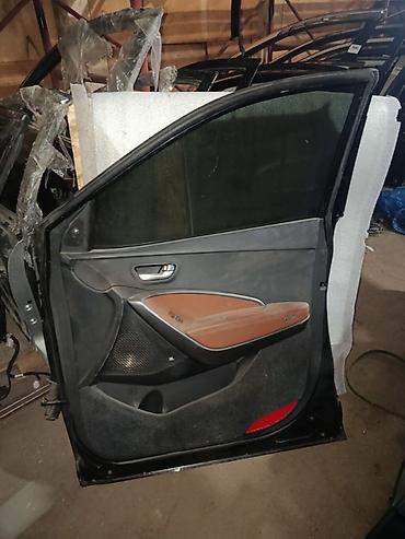 Подходит для замены передней правой двери на Santa Fe DM дорестайлинг. Цвет наружной панели — чёрный.