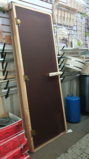 Дверь из стекла для бани и сауны! 1)Дверь - стекло бронза, короб - лиственные породы дерева 8мм прозрачный (190*70) 13500 сом 2) Дверь - стекло бронза, короб - лиственные ...