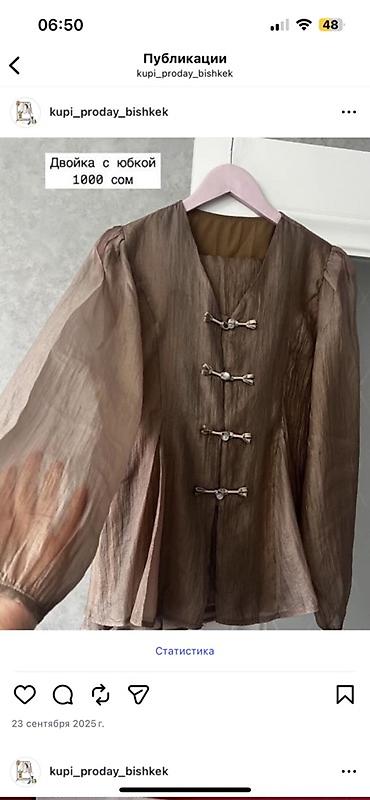 - Комплект из блузы и длинной юбки в благородном кофейно-бронзовом оттенке