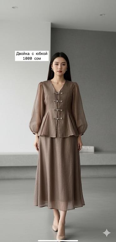 Двойка с юбкой - Комплект из блузы и длинной юбки в благородном