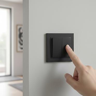 Двойной электрический выключатель черного цвета, предназначенный для накладного монтажа. Имеет две клавиши управления, что позволяет независимо управлять двумя линиями освещения или другими электрическими приборами. Корпус выполнен из матового пластика, обеспечивающего современный внешний вид и устойчивость к загрязнениям. Подходит для использования в жилых и офисных помещениях, а также в коммерческих объектах.