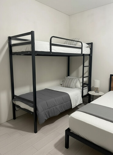Двухъярусная кровать с металлическим каркасом черного цвета и