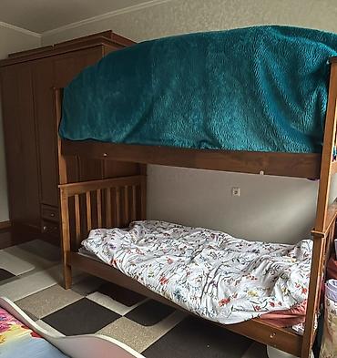 Двухъярусная деревянная кровать.