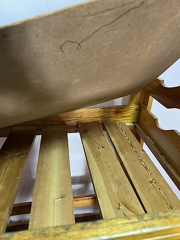 - Комплектность по фото: каркас кровати, реечные основания, мягкие вкладки/тонкие матрасы.
