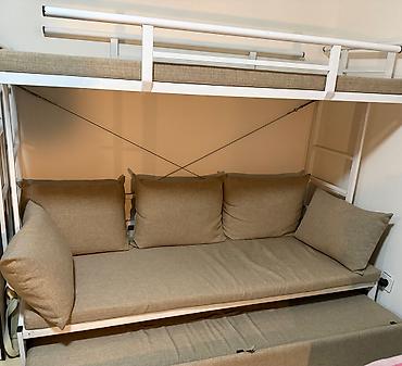 Сверху полноценное спальное место, снизу мягкий диван, который можно использовать как второе место для отдыха или сна.