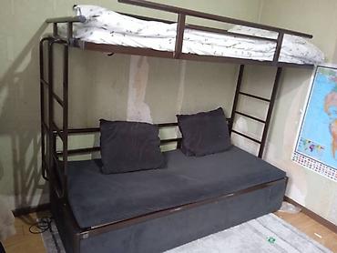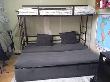- Нижний ярус: широкий диван на прочном основании, раскладывается в полноценное спальное место; включает две подушки.