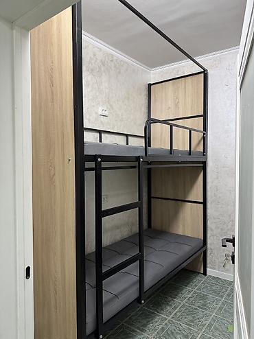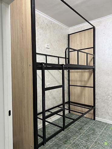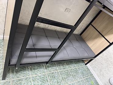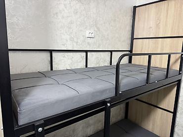 - Основание под матрасы — металлические лаги/рамы; на фото показаны тонкие серые матрасы.