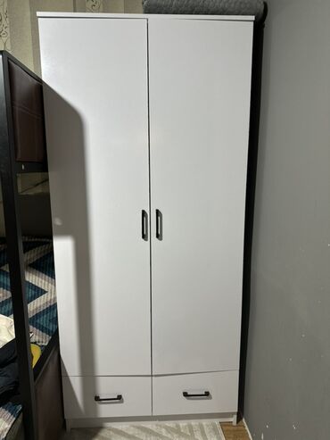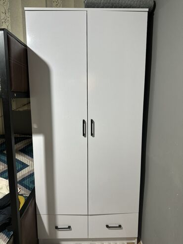 Шкаф с зеркалом 10000 сом Двухдверный шкаф-купе для одежды в современном минималистичном стиле. Характеристики: - Корпус и фасады в светлом матовом оттенке, лаконичный дизайн с контрастными верти...