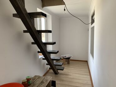 - Лестница на второй уровень — на металлическом косоуре с деревянными ступенями.