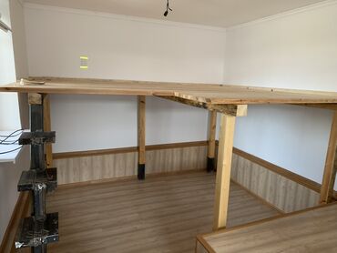 - Подготовлена площадка-антресоль из бруса с опорами; можно обустроить спальню, кабинет или зону хранения.