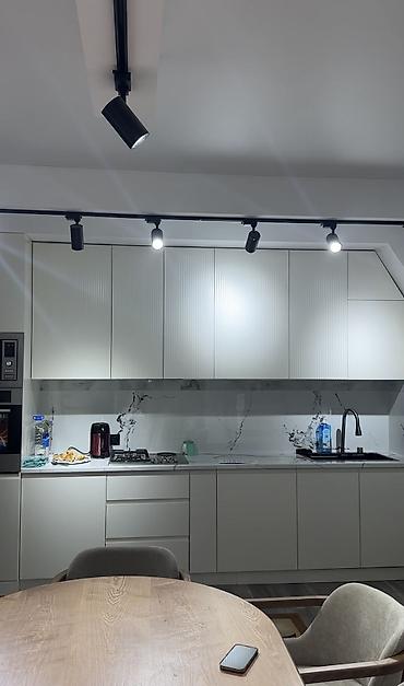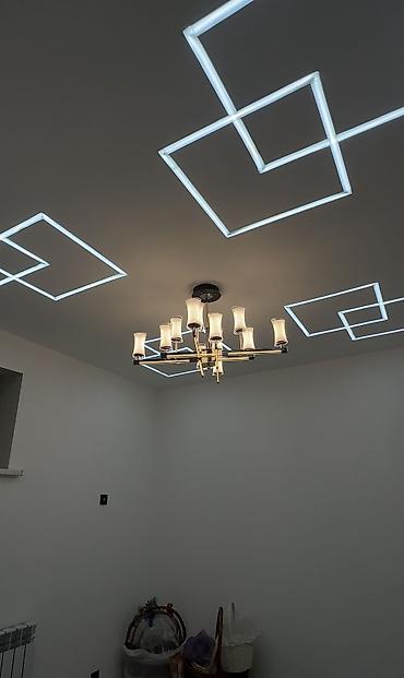 - Элегантная хрустальная люстра и точечная подсветка.