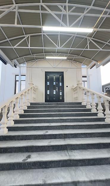 - Парадный вход с широкими гранитными ступенями и фигурными балясинами с двух сторон.