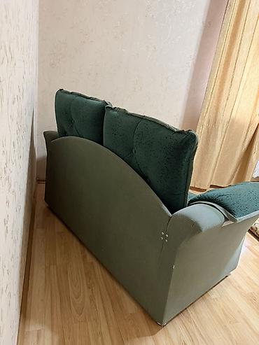 - Цвет: темно‑зеленый с обивкой из мягкого велюра/рогожки на сиденье и подушках; боковины и царга — в более светлом зеленом тоне.