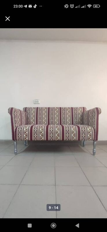 НовыйЭлегантный двухместный диван с яркой обивкой в полоску. Диван имеет изогнутые подлокотники и спинку, обеспечивая комфортную посадку. Узорчатая ткань с преобладанием бордовых и бежевых оттенков придает дивану выразительный вид, а серебристые ножки добавляют современный акцент. Идеально подойдет для гостиной, кабинета или прихожей, добавляя уют и стиль в интерьер.Этот диван станет центральным элементом любого помещения.