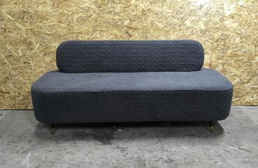 НовыйЭлегантный двухместный диван с обивкой из фактурной ткани тёмно-серого цвета. Диван имеет закруглённые края и спинку, что придаёт ему современный и мягкий вид. Четыре тонкие ножки обеспечивают устойчивость и приподнимают диван над полом, облегчая уборку под ним. Идеально подходит для небольших гостиных, прихожих или кабинетов, создавая уютное место для отдыха. Фактурная ткань обивки приятна на ощупь и устойчива к повседневному использованию, а также легко чистится.