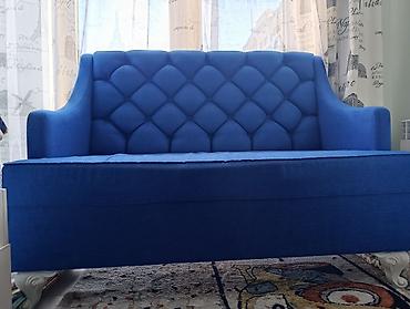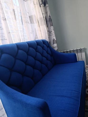 Для бара и кафе и другое Б/У Компактный двухместный диван с высокой спинкой. Всего 4 комплекта со столами (2 дивана и стол₽») - Стиль: современный, с декоративными крупными «пуговицами» по боков...
