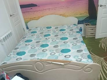 - Каркас из ЛДСП в светло-бежевом оттенке, фигурные элементы на изножье, плавные формы изголовья.