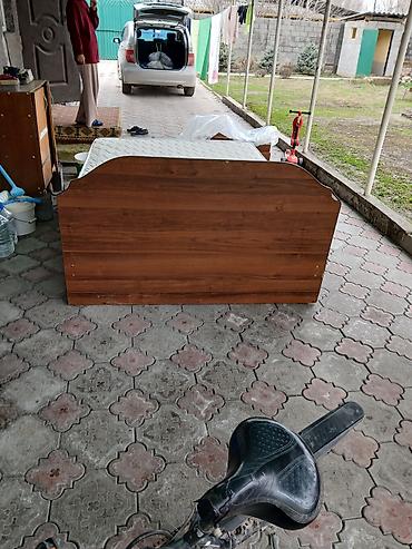 - Каркас из ЛДСП под древесную текстуру, классический прямой дизайн с изголовьем и изножьем.