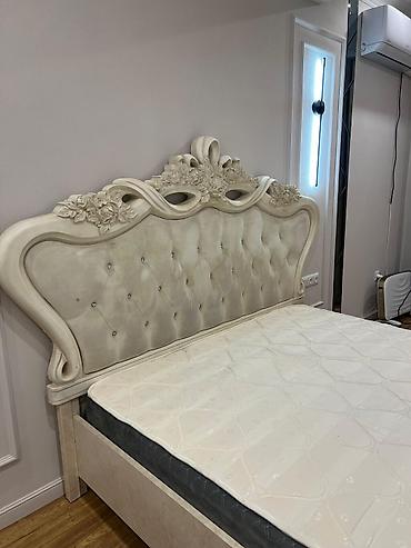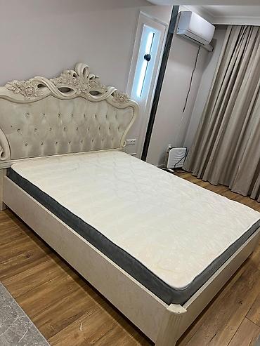 Двуспальная кровать, Б/у, С матрасом, длина - 200 см