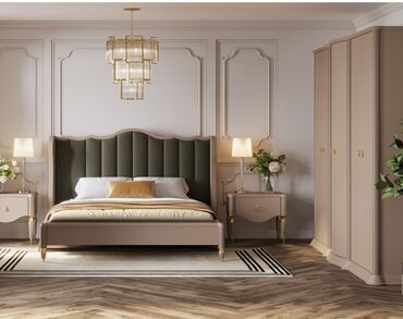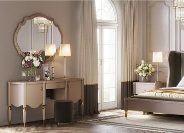 Изящность и нотки роскоши набору придают теплые нежные оттенки тонировки и обивки и сверкающие золотистые детали декора и фурнитуры.