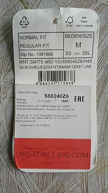 Мужская куртка, L, Lc Waikiki, Новый, цвет - Синий, Самовывоз
