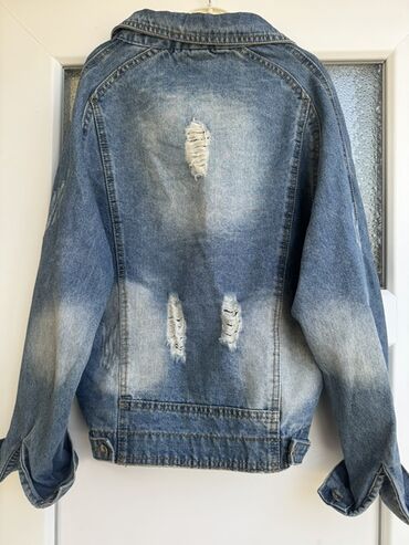 - Декор: нашивка на рукаве, броши-значки на одном из карманов (можно снять), декоративные потертости и прорези спереди и на спинке.