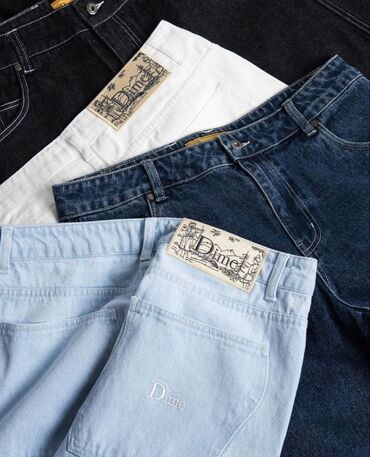 Джинсы Dime - Прямой свободный крой - Светло‑голубой деним, классическая варка - Два большие накладные кармана сзади - Вышитый логотип Dime на правом заднем кармане - Фирменный патч Dime на поясе ...