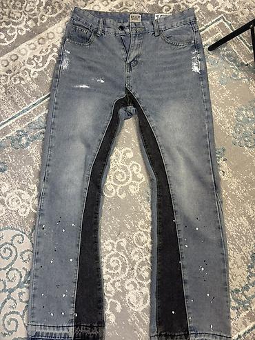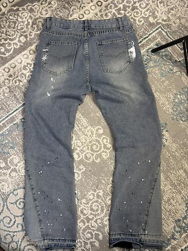 - Декор: художественные брызги краски по штанинам, легкие потертости спереди