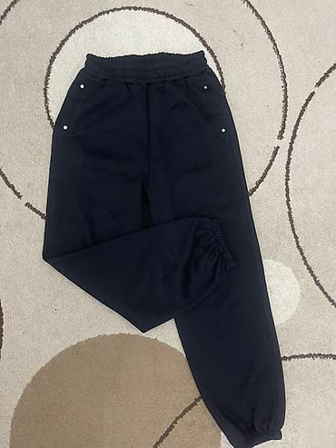 4) Спортивные брюки (джоггеры) черного цвета. Пояс на широкой резинке, манжеты-резинки по низу штанин. Два боковых кармана с небольшими декоративными заклепками. Плотный мягкий трикотаж, комфортная посадка.
