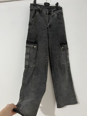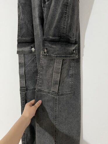 Джинсы карго из плотного денима графитового цвета с эффектом выварки