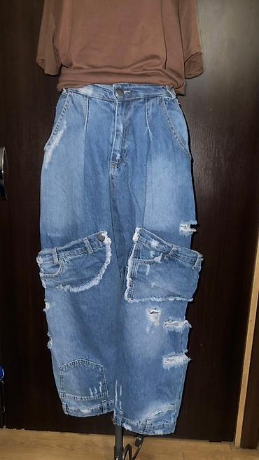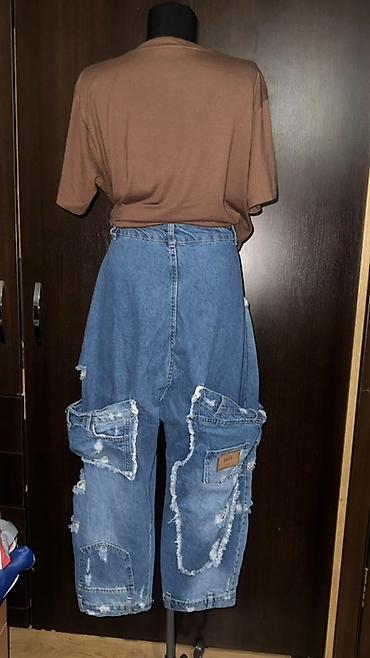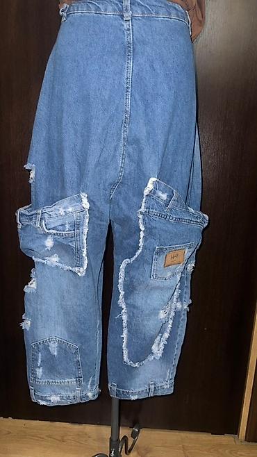 Джинсы, Карго, Китай, Высокая талия, Вареные, L, XL