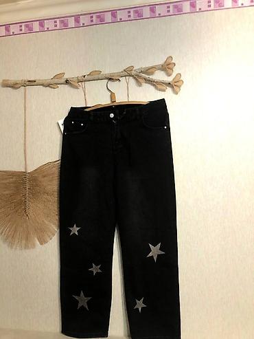 Моднючие джинсы, подростковые на девочку 10 лет ростовка 150 см, длина 88см. модный, дизайнерский крой! Б/У состояние новых, мало носили т.к стали малы! Покупали в ГУМе за 3 тыс. сом - Цвет: темно...