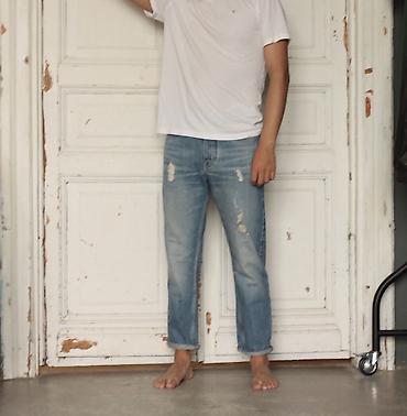 Широкие джинсы с эффектом потёртостей и «крапинок» краски - Модель