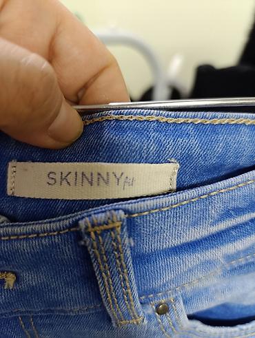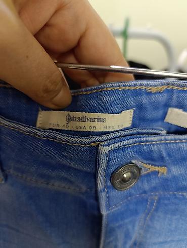 Джинсы Stradivarius светло-голубого цвета, зауженного кроя (skinny fit). Модель с потертостями и небольшими разрезами на штанинах. Нижний край штанин с необработанными краями. Подойдут для создания повседневного образа.