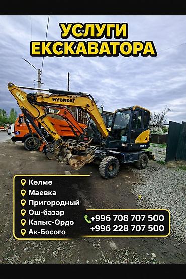 Услуги колесного экскаватора с оператором. - Локация: Ош; выезд по всему Кыргызстану (командировки — по договоренности). - Оснащение: ковш для земляных работ, гидролинии под навесное оборудование....