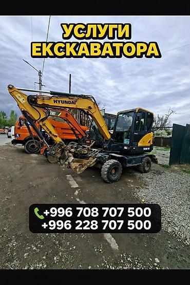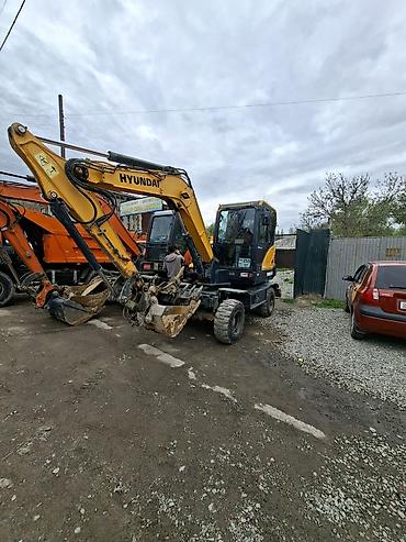 Услуги экскаватора по всему Бишкеку. Колесный мини-экскаватор Hyundai 60W-9: - Маневренная техника для города и частных участков - Ковш универсальный для копки траншей, котлованов, планировки - По...