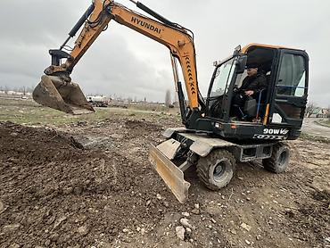 Услуги мини-экскаватора Hyundai HW60 (колёсный) - Работы: планировка участков и площадок, разработка котлованов и траншей, копка под коммуникации, выемка и погрузка грунта/щебня, расчистка террито...