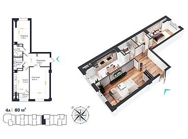1 500 USD2 комнаты, 75 м², Элитка, 10 этаж, Готовая ПСО (под самоотделку)