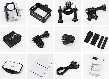 10. Аксессуары: водонепроницаемый чехол, крепление водонепроницаемого чехла, задняя рамка, держатель для велосипеда, держатель для шлема, подставка, адаптер, липучка + ремешок, наклейки 3М, кабель, аккумулятор.