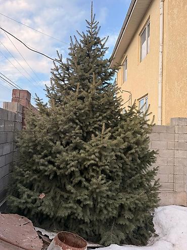 Ель декоративная (возможно, ель колючая/голубая форма). Крупномер
