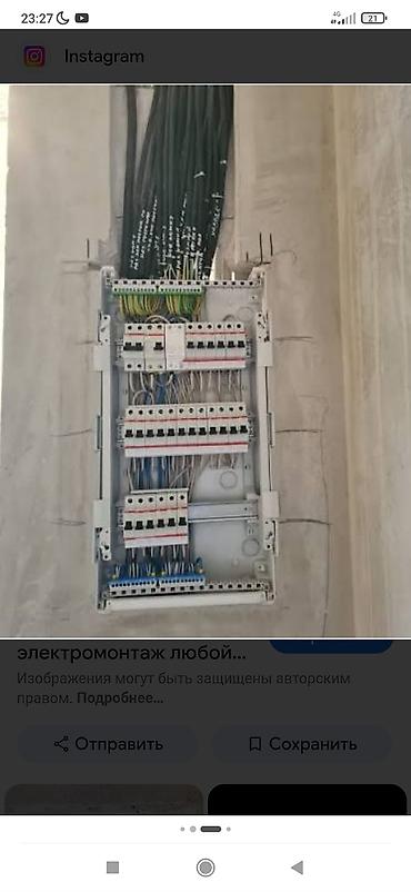 - Прокладка кабеля в штробах/гофре/коробах, маркировка жил, опрессовка НШВИ, аккуратная укладка в щите, шины PE/N.