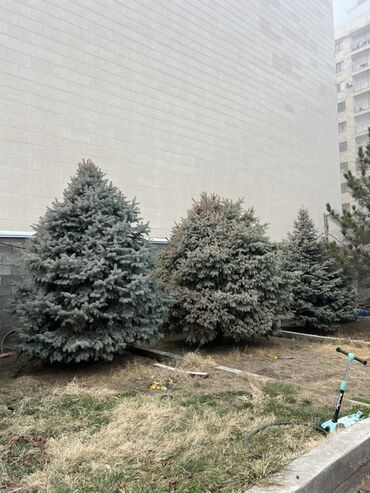 Ель колючая (Picea pungens), голубая форма — взрослые декоративные деревья для ландшафтного озеленения.
