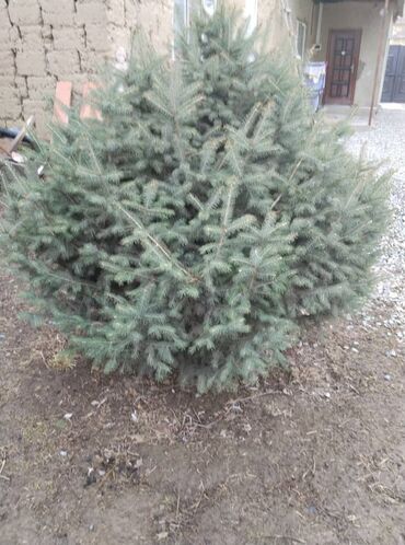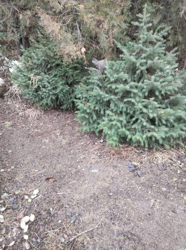 - Несколько взрослых деревьев разной формы и высоты: от компактных шаровидных кустов до пирамидальной ели около 1.5-2м