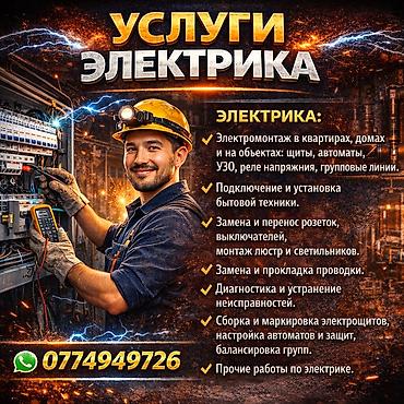 Услуги электрика — все виды работ. - Монтаж и замена розеток, выключателей, вилок - Прокладка и замена электропроводки (скрытой/открытой), штробление, кабель-каналы - Сборка и установка электрощит...