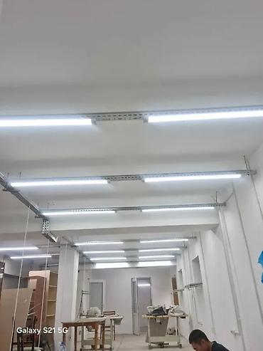 - Освещение: монтаж магистралей и шин, подвесных и накладных светильников, линейных LED-систем, промышленное освещение цехов